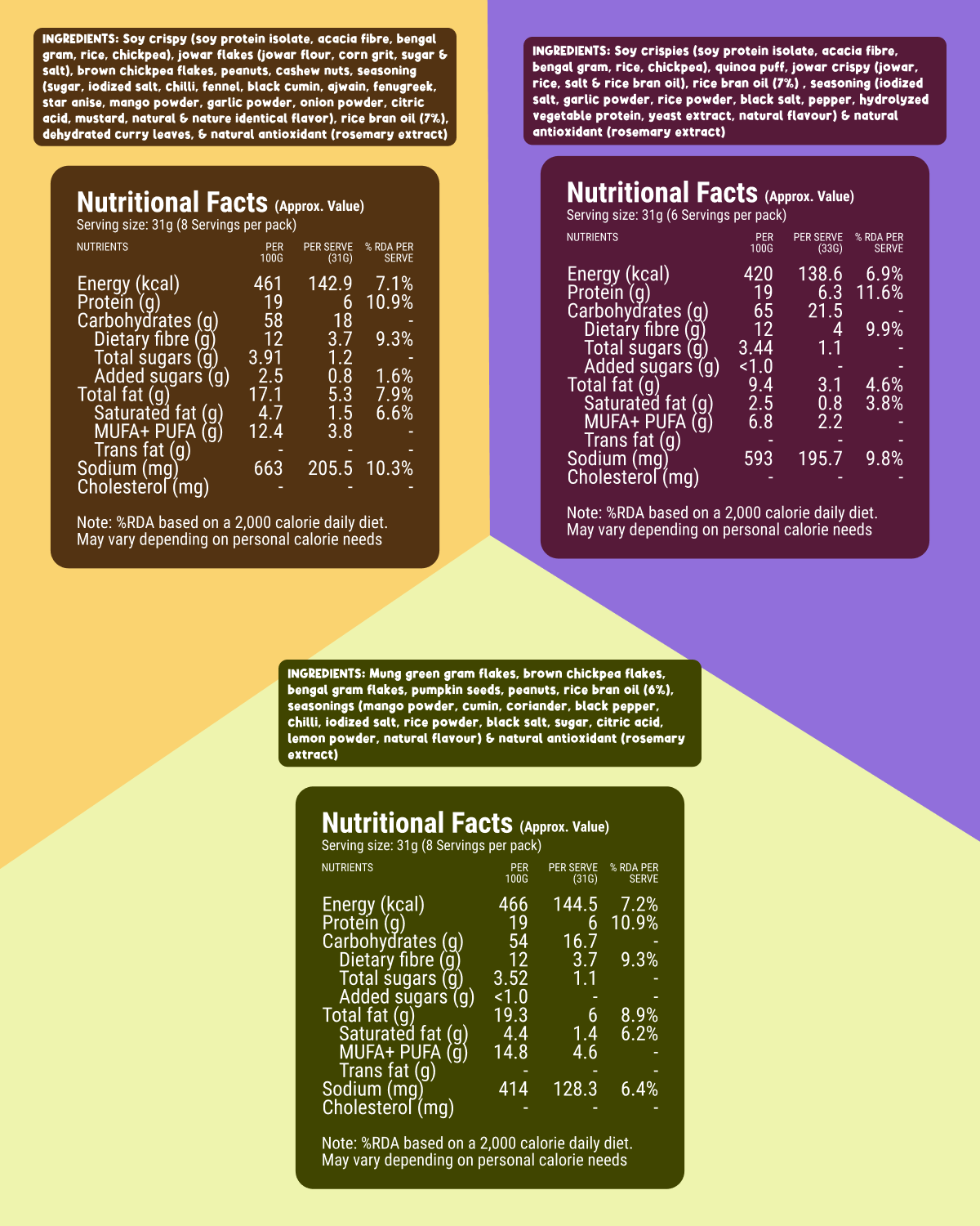 Three legends, one combo. Achari tang, pepper-garlic power, and lime-chilli zing - basically a flavor concert for your tastebuds. Every handful hits different. Sure, it’s nostalgic. But this version has gone to the gym, found its macros, and is ready to party. Perfect for the gym rat, the Netflix binger, the late-night craver, and everyone who just loves good snacc drama.
