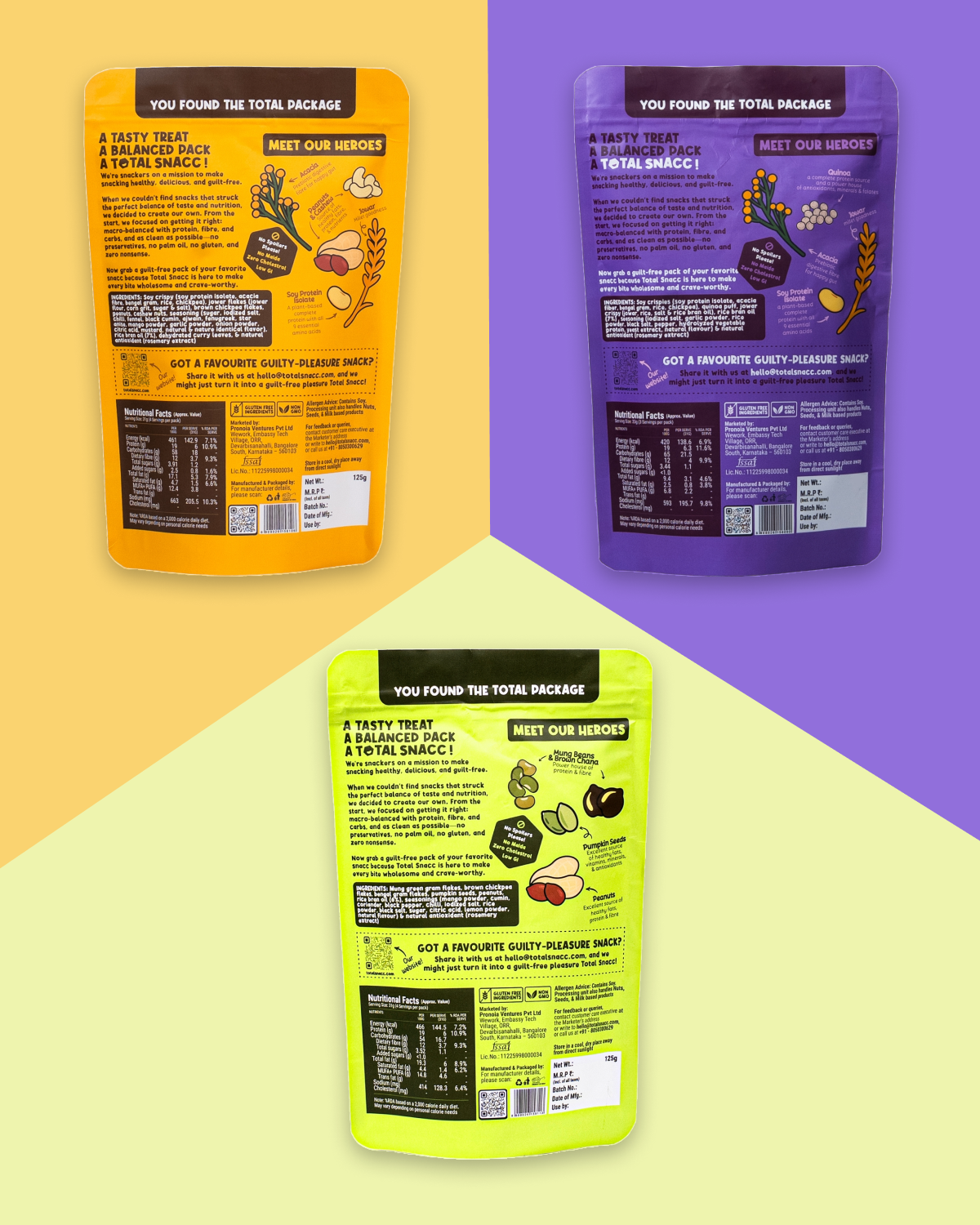 Great question! We achieve shelf life the smart, natural way - not with chemicals. We keep Total Snacc naturally fresh using a combination of smart food science and nature’s goodness. Our snacks stay crisp and safe thanks to advanced roasting technology, airtight packaging, and the use of natural antioxidants like rosemary extract - which help protect the ingredients and extend freshness. This way, you get long shelf life without any artificial preservatives, just real ingredients that stay delicious for longer.